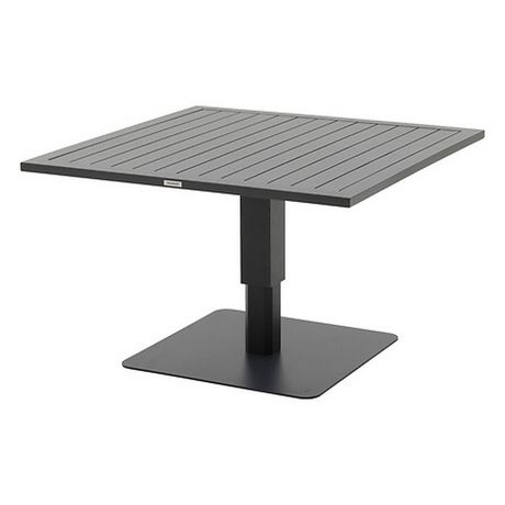 Parfaite pour les petits espaces extérieurs, la table de jardin relevable carrée SALIMIA est un meuble de jardin moderne et astucieux. Sobre et élégante, la table relevable SALIMIA se distingue par sa structure en aluminium teinté dont le plateau est habillé de lattes. Bien stable grâce à la large base de son pied, elle s'ajuste en hauteur en un clin d'œil pour passer de l'apéritif au dîner. Sur un balcon comme sur une terrasse, cette table carrée sera très conviviale entourée d'un canapé et de fauteuils d'extérieur. Conçue pour accueillir 4 personnes, elle offre un confort accru grâce à son unique pied central. Traitée époxy, cette table de jardin est résistante à la rouille et à la décoloration due aux rayons UV. Vous pourrez la nettoyer avec une éponge savonneuse et la stocker au sec en hiver, protégée par une housse compatible.