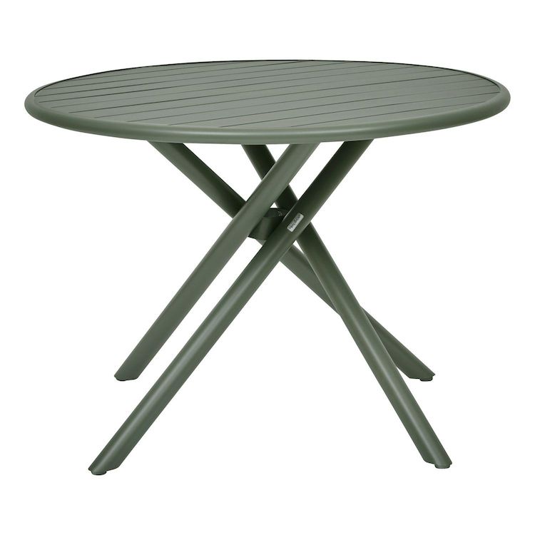 La table de jardin NEBULLIA conviendra particulièrement bien aux petits espaces extérieurs. Conçue pour recevoir 4 personnes, la table de jardin NEBULLIA séduit par son style industriel et sa forme ronde très conviviale. Réalisée en aluminium teinté, elle est équipée d'un plateau à lattes et d'un piètement élégant composé de 4 pieds croisés. Ces derniers sont ajustables afin de compenser les irrégularités du sol et de vous offrir une parfaite stabilité. Cette table ronde peut être complétée par des chaises de jardin et vous pourrez choisir des chaises pliantes pour plus de praticité sur un grand balcon ou une petite terrasse. Ajoutez une voile d'ombrage ou un petit parasol décentré afin de vous protéger du soleil et de profiter de repas agréables ! La structure en aluminium de cette table est traitée époxy contre la rouille et elle est également protégée contre la décoloration due au soleil. Vous pourrez la nettoyer à l'eau savonneuse. Pensez à ranger votre mobilier au sec en hiver pour garantir sa durée de vie.