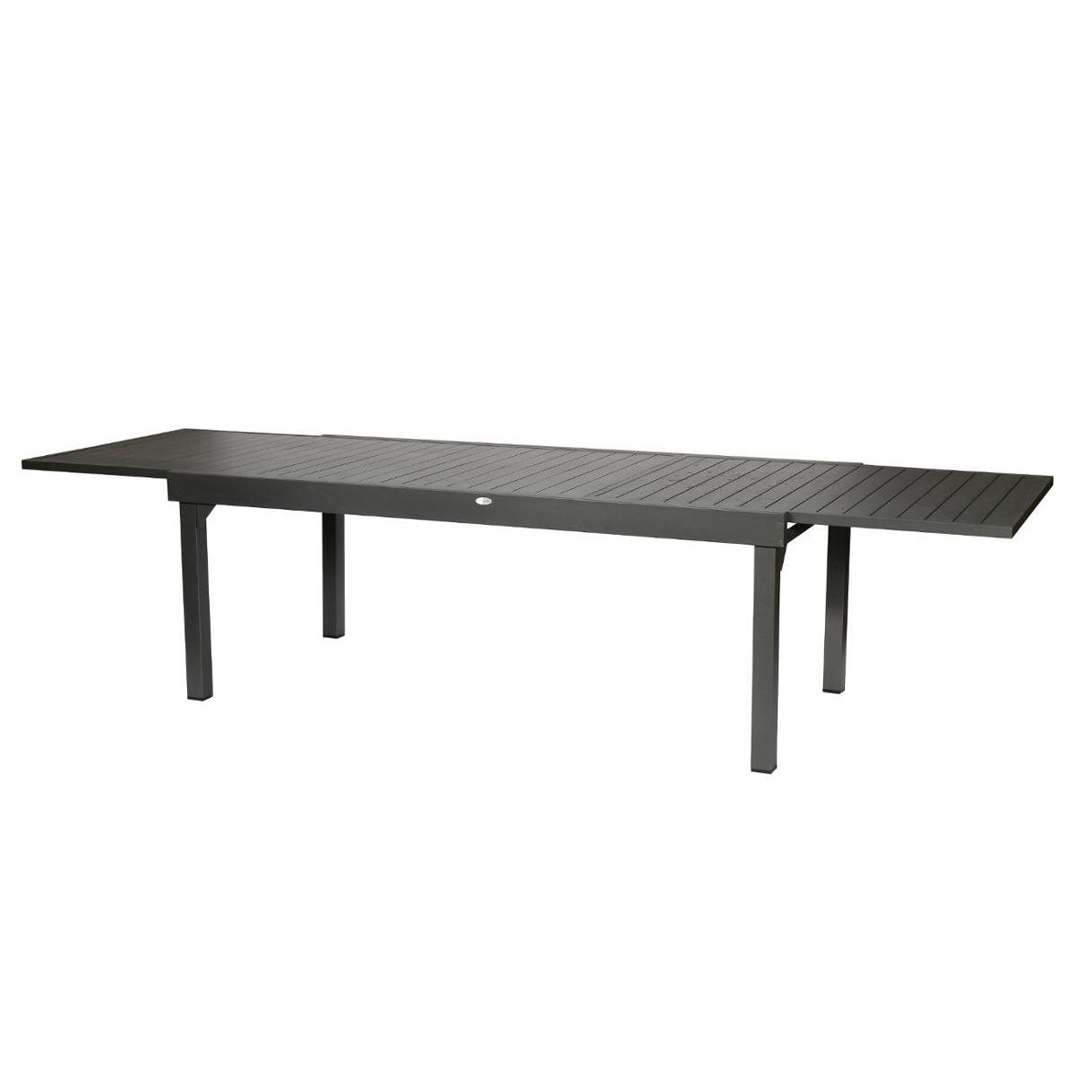 Table de jardin extensible Piazza de la marque Hespéride. Elle vous permet d'accueillir de 10 à 12 personnes.Entièrement en aluminium, elle vous permet de passer de 10 à 12 places en quelques secondes grâce à sa rallonge coulissante.Nombre de places : 10/12Dimensions de la table ouverte (L x l x H)