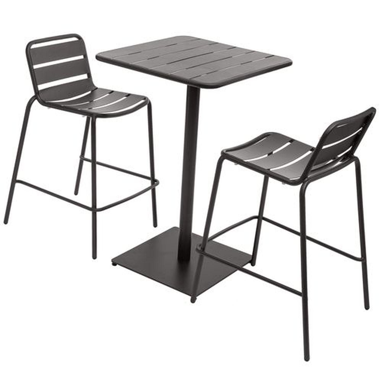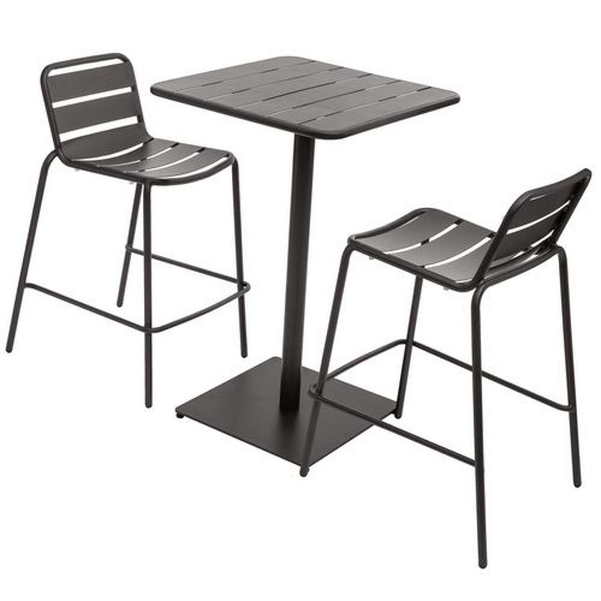 Créez un univers cocooning dans votre extérieur avec cet ensemble repas haut design.FICHE TECHNIQUE- Chaises haute en acier.- Table haute en acier.- Ensemble idéal pour deux personnes.- Traitement antirouille avec une finition de la structure en peinture epoxy et électrodéposition.- Empilables, les