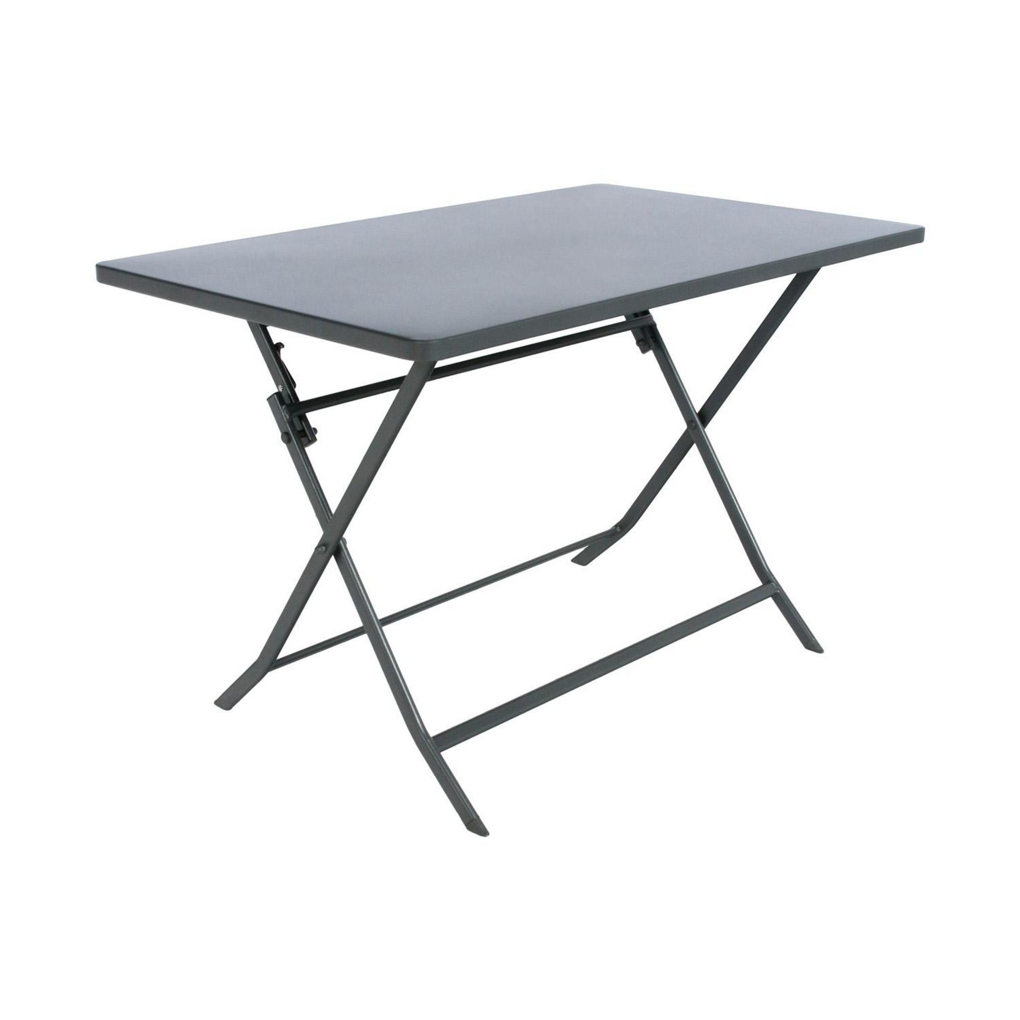 FICHE TECHNIQUE- Table en acier avec finition mate.- 4 Places.- Peut se plier pour aller se ranger en un instant.- Tient debout une fois pliée.- Traitement anti-rouille pour une longévité optimale.CARACTERISTIQUES TECHNIQUES- Dimension L. 110 x l. 70 x H. 71 cm.- Poids : 11 kg.