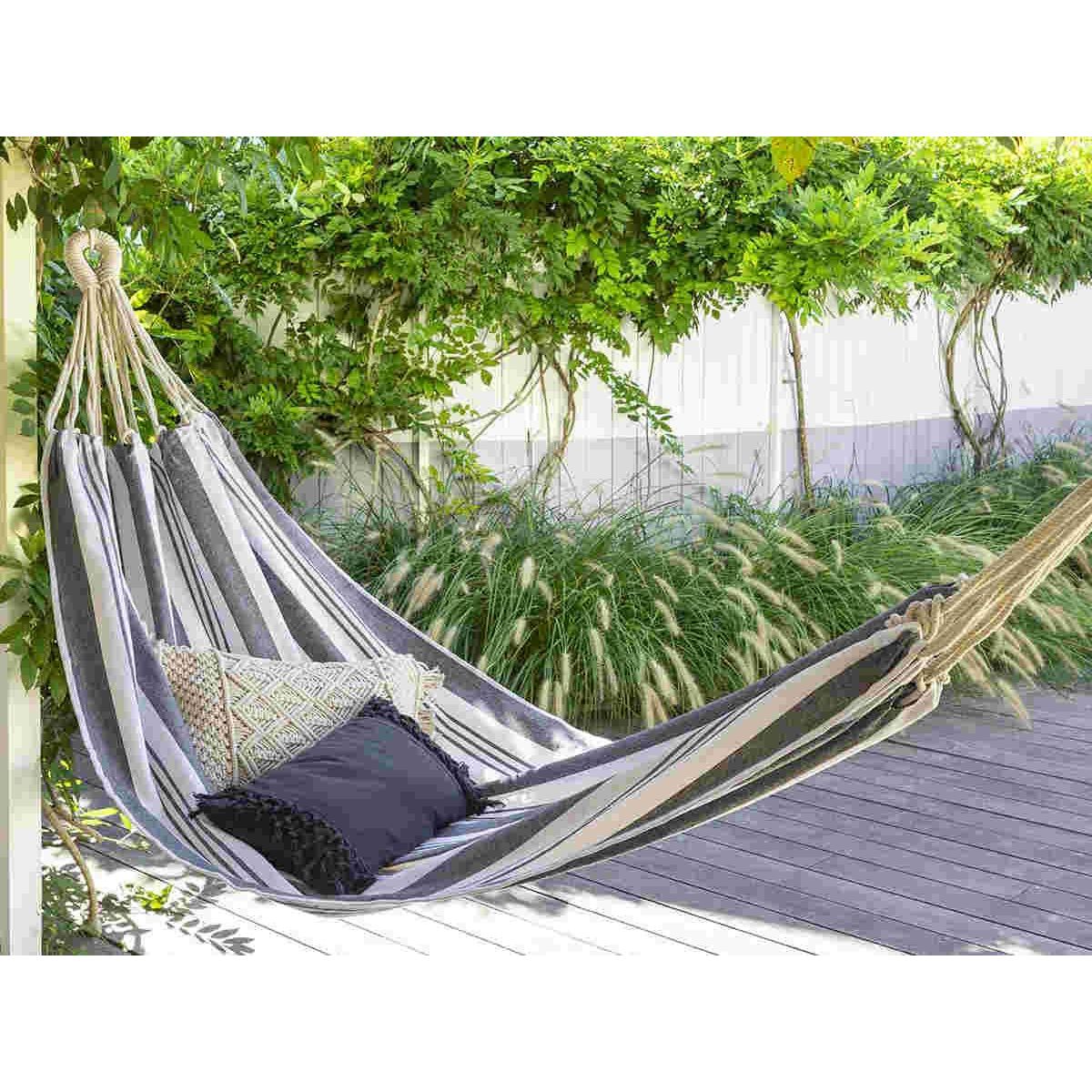 Toile hamac coton à rayures Elozio Gris - Hespéride