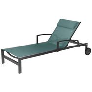 Idéal pour vous détendre dans le jardin ou au bord de la piscine dès les premiers rayons de soleil, le transat Ocala Hespéride va vous plaire. Le transat Ocala saura séduire les amateurs de décoration contemporaine. Sa structure en aluminium aux lignes droites vous offrira un style épuré, qui se combinera avec vos autres éléments de mobilier extérieur. Ce transat, avec son repose-tête, ses accoudoirs et ses quatre positions d'inclinaison, vous invitera à vous prélasser en toute tranquillité. Ses larges pieds à l'avant sont synonymes de stabilité. Pour déplacer le transat Ocala, il vous suffira de le soulever légèrement et de le faire rouler là où vous le souhaitez. Grâce à son traitement époxy et son assise en texaline, votre transat résistera à la rouille et aux pluies fines. Pensez simplement à le ranger sous une housse quand vous ne l'utilisez pas.