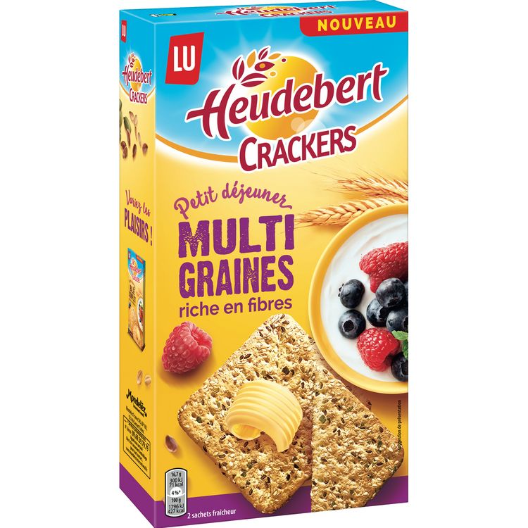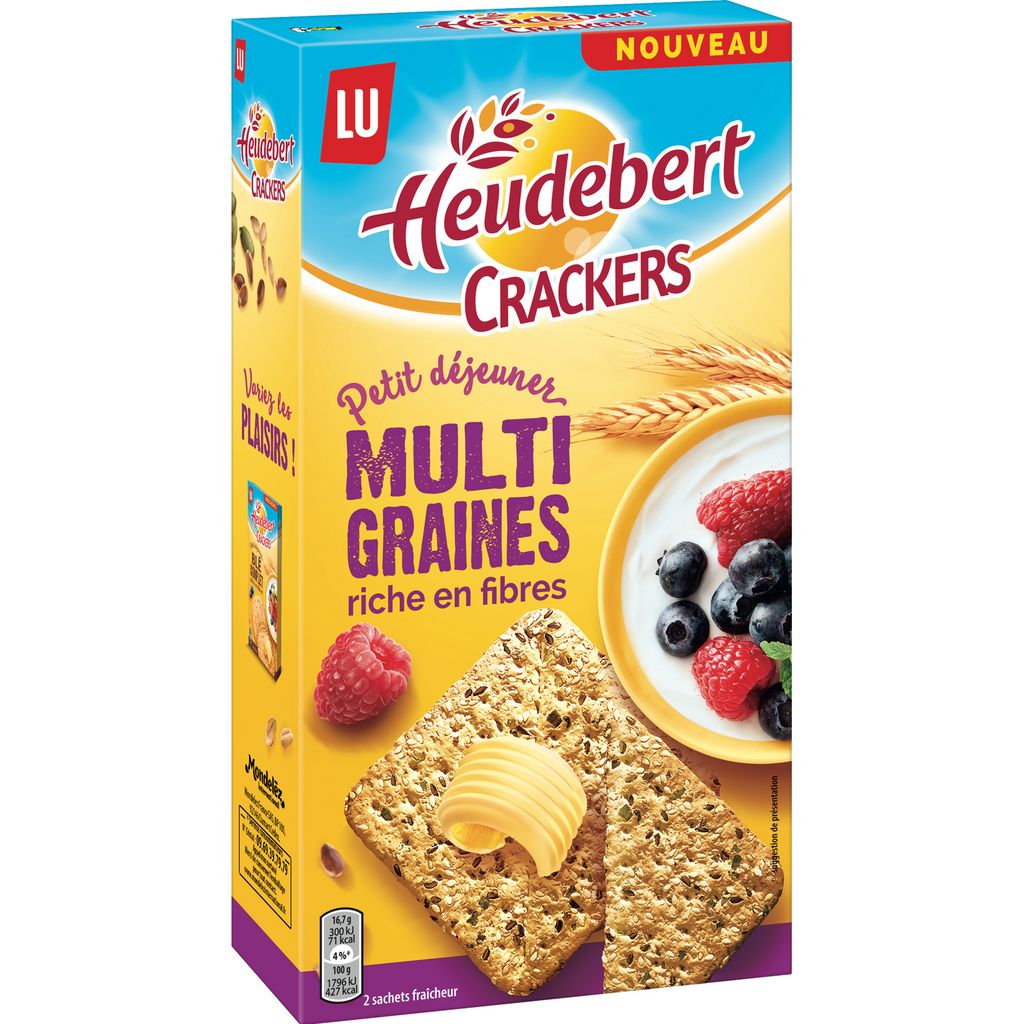 Crackers Heudebert Multi-graines : des crackers aux graines de sésame, de lin et de citrouille. Crackers au blé complet et aux graines de sésame, de lin et de citrouille, enrichis en calcium.