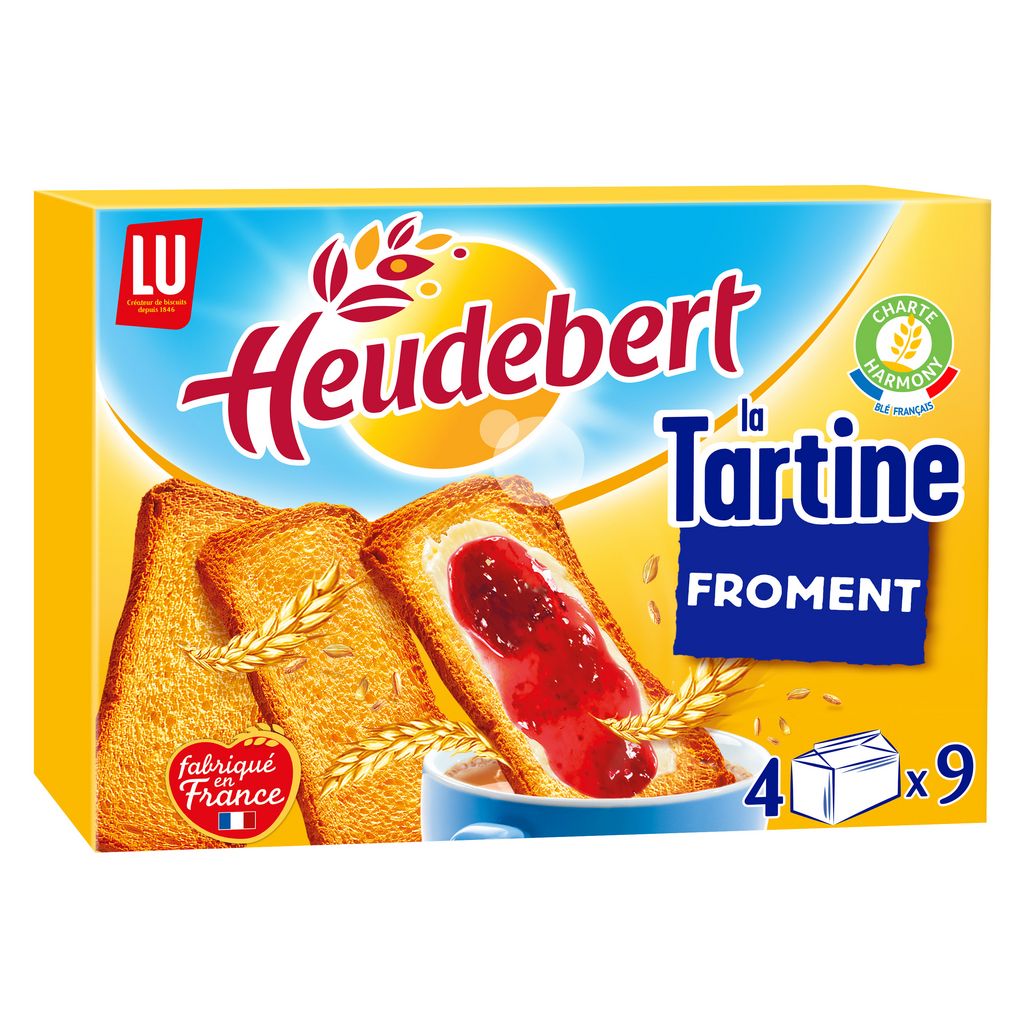 Ce qui rend la Tartine Heudebert si fondante, c'est son mode de cuisson avec un premier passage au four qui donne une mie aérée, et un second réalisé après tranchage qui permet d'obtenir des tartines finements grillées, à la texture si légère et fondante. C'est aussi une recette source de fibres qui contribue aux apports dont votre corps a besoin. Heudebert, croustillez français