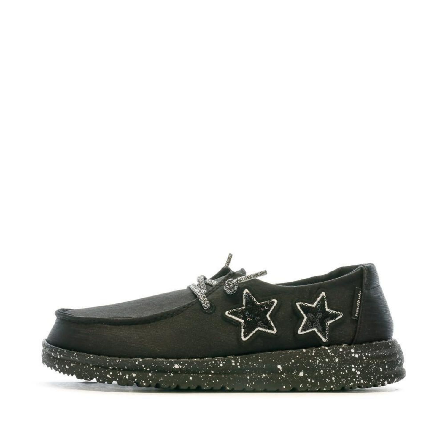 Optez pour ces chaussures de la marque Hey Dude ! Coloris : Noir Chaussures basses Semelle intérieure amovible Semelle Gomme ultra-légère Semelle intérieure Semelle anatomique en mousse à mémoire de forme, doublée liège Certification Vegan, ne contient pas de produit dérivé d'animaux Intérieur Textile Tige : textile (coton biologique) Plateforme de 3 cm