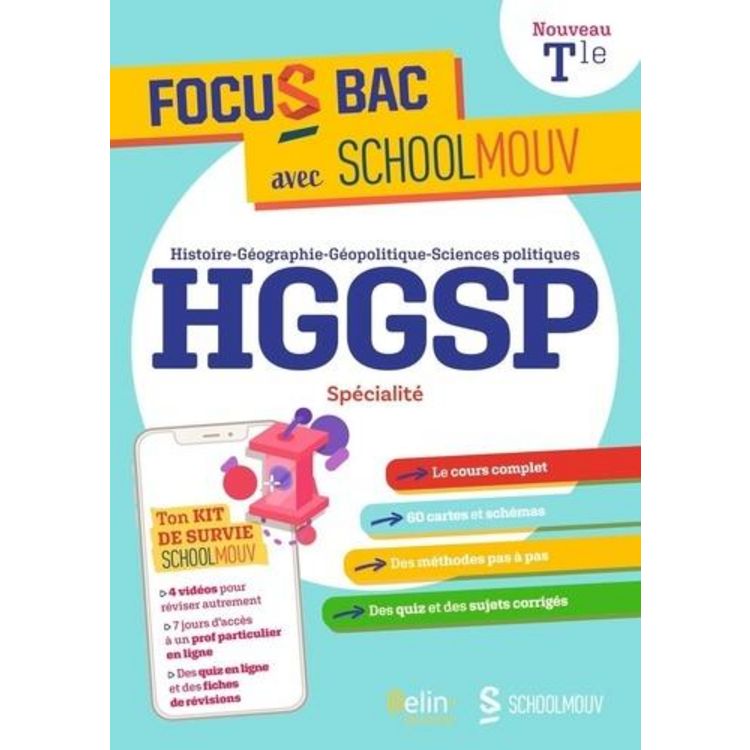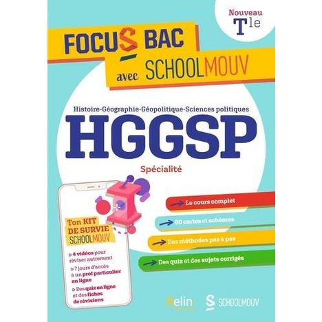 En savoir +Le cours complet pour comprendre les enjeux et retenir l'essentiel. Des cartes et des schémas pour retenir efficacement. Des rappels des acquis 1re et des quiz pour se tester. Des méthodes pas à pas pour progresser. Des sujets guidés et des sujets complets corrigés pour s'entraîner. Des conseils pratiques pour bien se préparer à l'épreuve. + Inclus : Ton kit de survie pour le Bac avec SchoolMouv Des fiches de révision avec des focus sur des points de cours. Des vidéos pour mieux comprendre et s'en souvenir à coup sûr. Un tchat avec un prof particulier pour poser toutes les questions gratuitement pendant 7 jours.