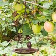 Le plateau a boisson pour oiseaux a egalement une figurine d'oiseau decorative et antique, un rebord exquis et un support dans une finition d'aspect rouille.