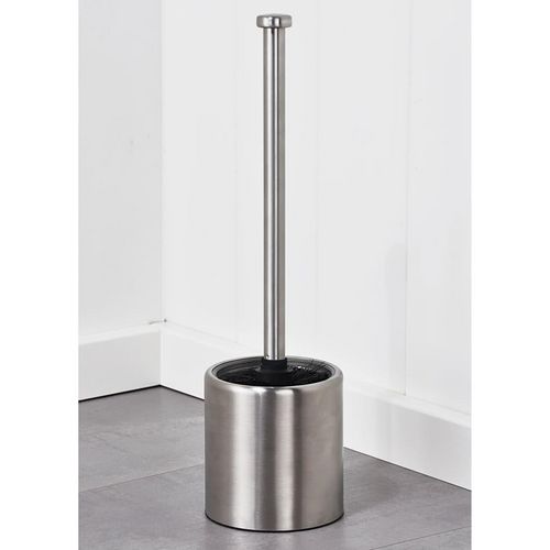 L'ensemble est en acier inoxydable 201 avec une finition mate et en plastique dans les couleurs argente et noir. Il se compose d'un porte-brosse et d'une brosse de toilette avec une tige. La brosse de rechange n'est pas incluse.