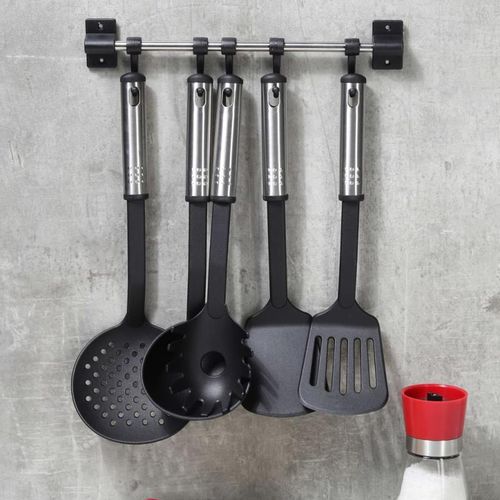 HI Ensemble d ustensiles de cuisine 6 pcs Noir et argenté