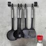 Incluant spatule, écumoire, louche, pince et deux ustensiles multifonctions, cet ensemble couvre toutes les techniques de cuisson. Compatible avec tous types de feux et poêles antiadhésives.