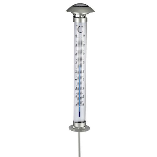 En savoir +La lampe solaire avec thermometre de la marque HI est une lampe d'exterieur tres utile pour eclairer votre allee, jardin et arriere-cour.