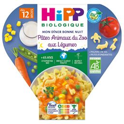 Assiette pâtes animaux du zoo au légumes bio dès 12 mois