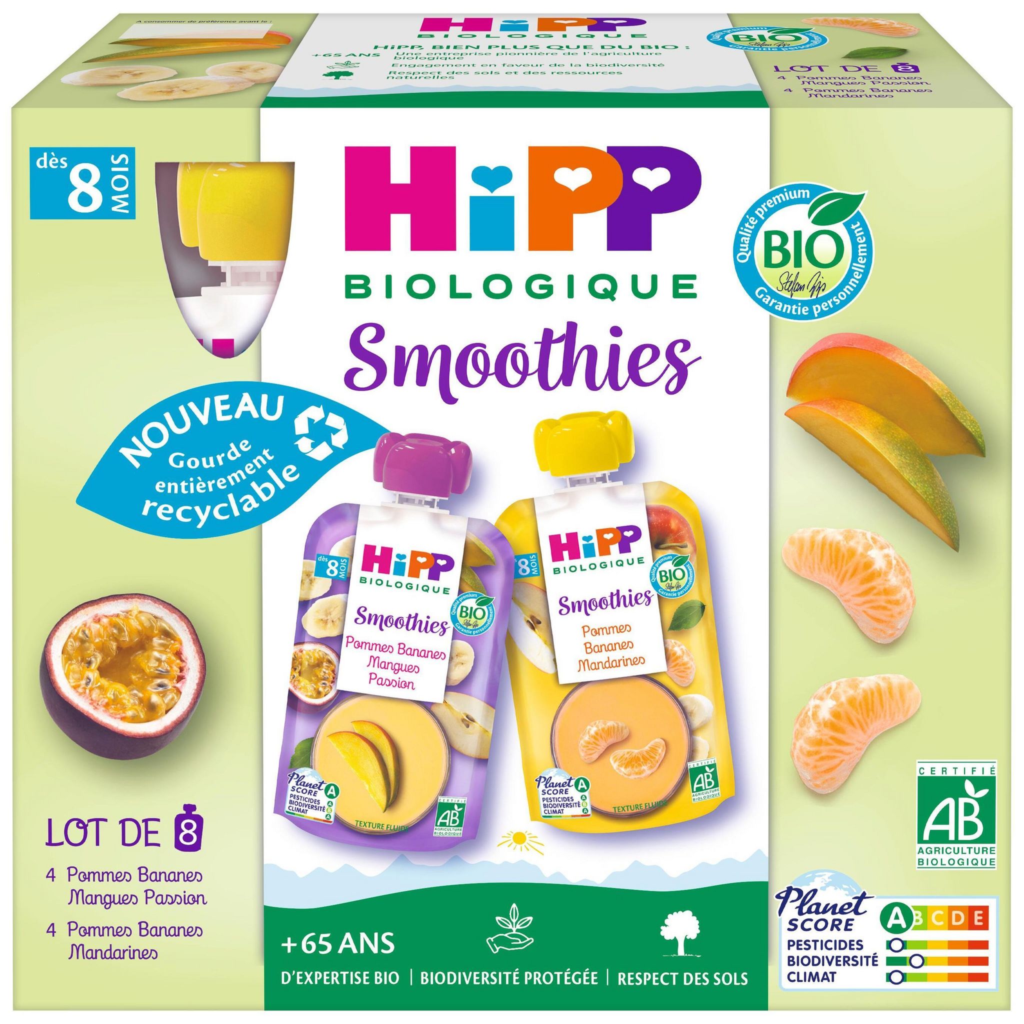 Biologique gourdes smoothies aux fruits bio 2 variétés dès 8 mois