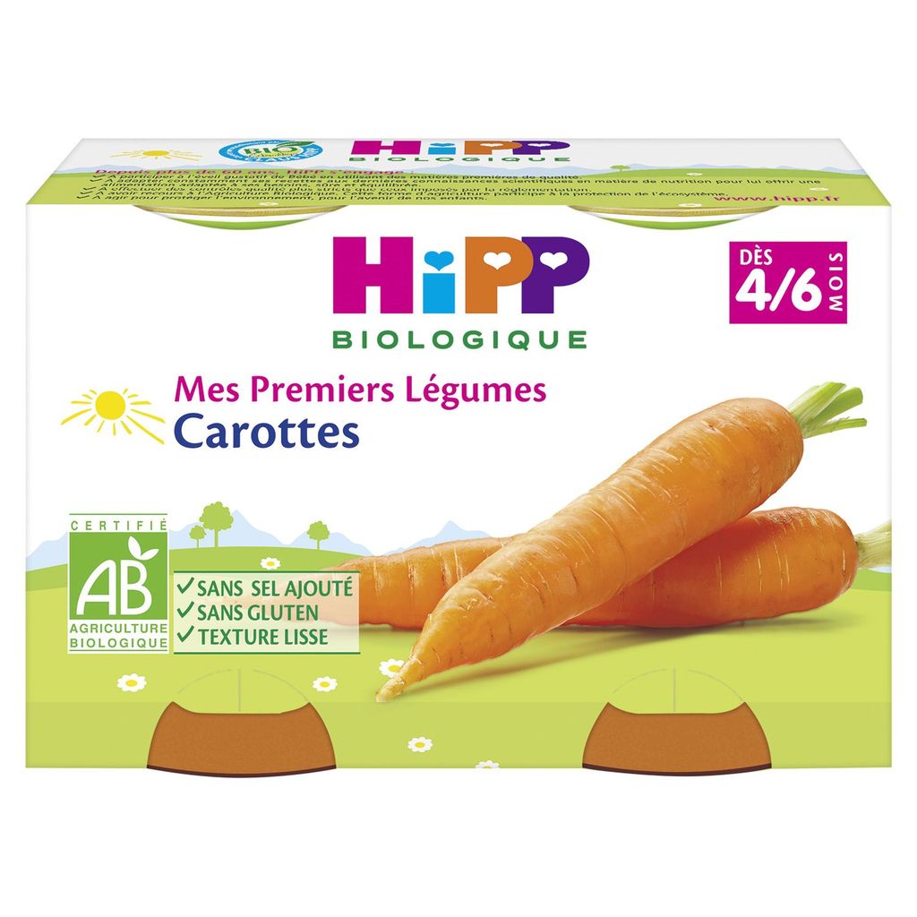 Hipp bio carottes pots 2x125g dès 4/6 mois