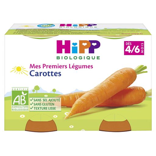 La diversification pas à pas es Premiers Légumes sont des purées de légumes de composition simple, sans sel ajouté, pour les premières cuillères de Bébé : ✔ des légumes bio récoltés à maturité et cuits à la vapeur pour préserver au mieux leurs goûts et leurs nutriments, ✔ des variétés de légumes adaptés à l’âge de Bébé et sélectionnés pour leurs saveurs, ✔ une texture lisse adaptée aux premières cuillères ou pour l’ajout au biberon de lait habituel. Purée de légumes biologique adaptée à l'enfant : carottes
