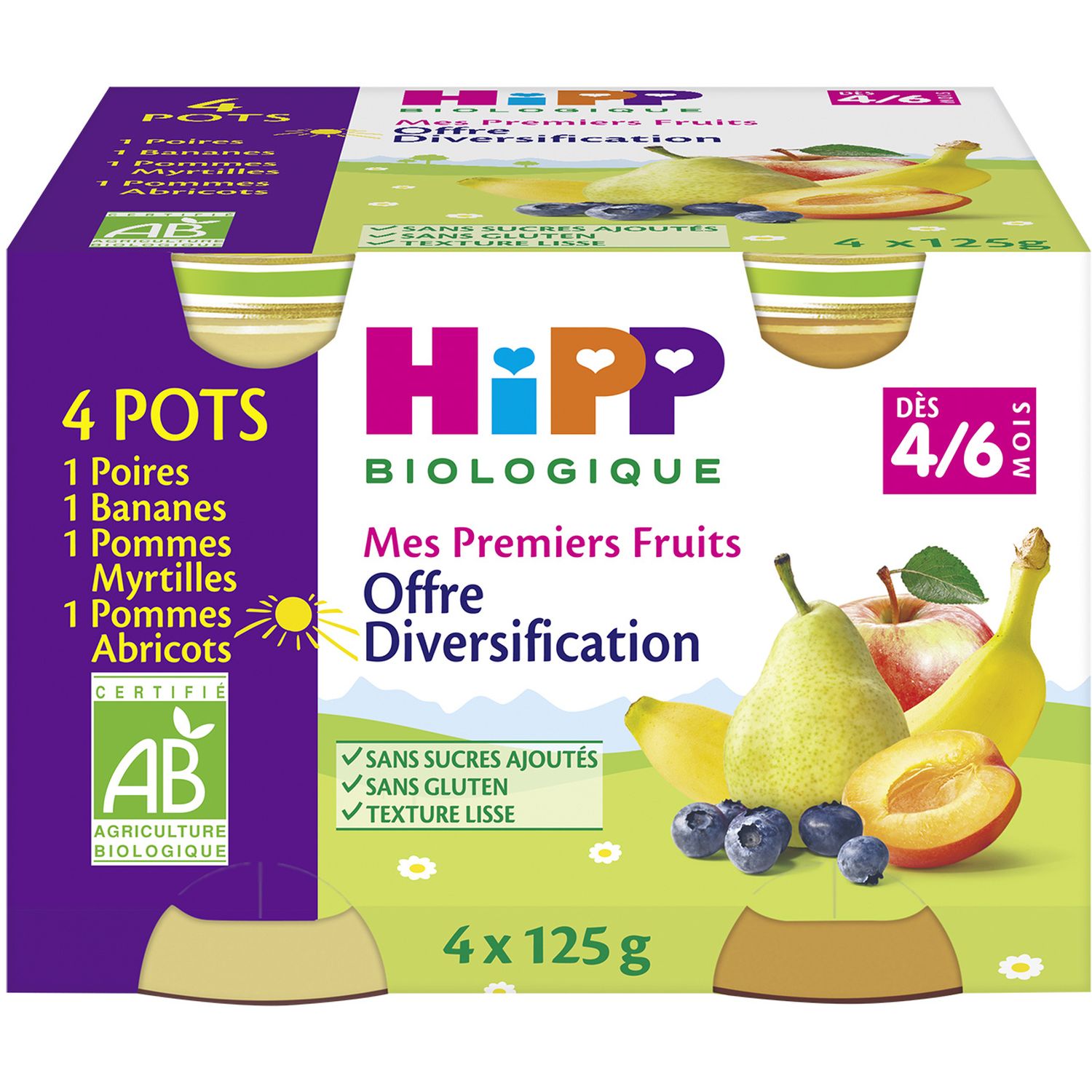 Hipp bio poire banane pomme myrtille 4x125g dès 4/6 mois