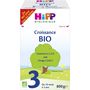 Pourquoi choisir le Lait HiPP 3 Croissance BIO ? Notre dernière génération de lait HiPP 3 Croissance BIO contient des ingrédients biologiques soigneusement sélectionnés : ✔ Du lait bio issu de vaches nourries d'herbes et de fourrages non traités et sans OGM (<0.9%*), ✔ Des huiles végétales biologiques. ais également des apports nutritionnels adaptés aux besoins de votre bébé : ✔ Vitamine A pour le bon support du système immunitaire, ✔ Vitamine C pour une bonne assimilation du fer par l'organisme, ✔ Vitamine D importante pour le bon développement des os et dents, ✔ De l’iode, important pour le développement cérébral et pour soutenir le fonctionnement de la thyroïde, ✔ Acides gras poly-insaturés à longue chaîne : oméga 3 (Acide alpha-linolénique) qui participent au bon développement cérébral ✔ Goût nature, sans ajout d’arômes. *Conformément à la réglementation en vigueur sur le mode de production biologique. Lait de suite biologique pour nourrissons à partir de 10 mois et aliment lacté pour enfants en bas-âge.