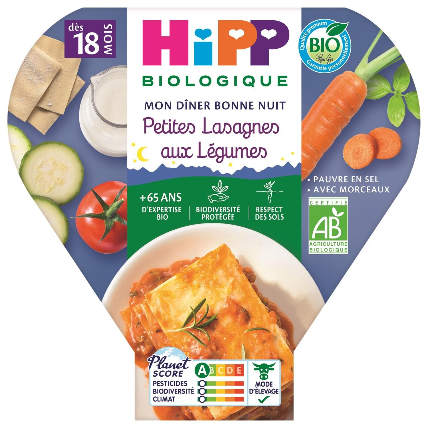 Mon dîner bonne nuit Assiette petites lasagnes aux légumes bio dès 18 mois