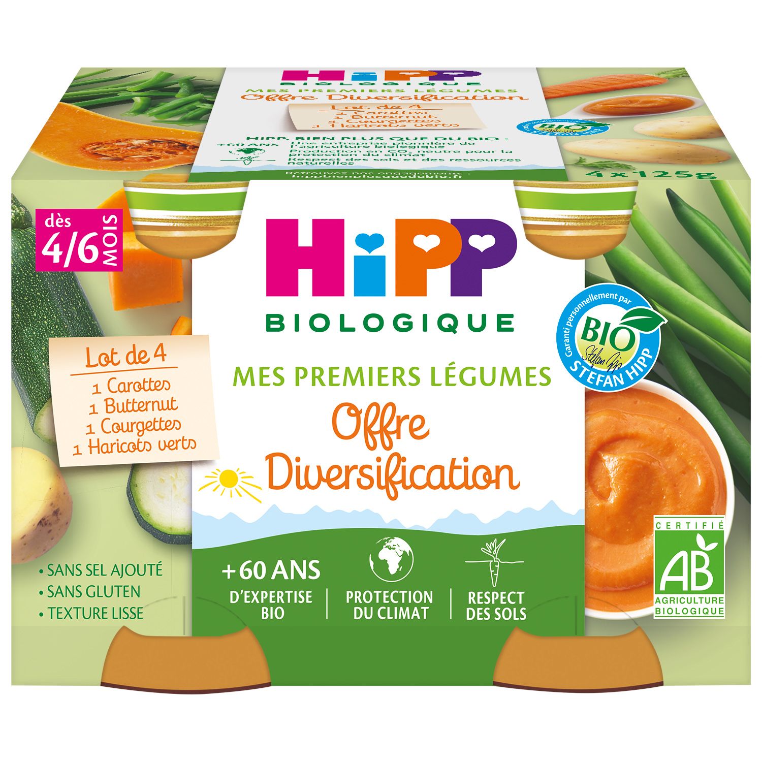 Dans ce pack, HiPP a choisi 4 variétés de légumes afin d'amener votre bébé sur le chemin de la découverte des saveurs !
