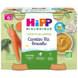 Purée de légumes biologique adaptée à l'enfant. Carottes Riz Brocolis