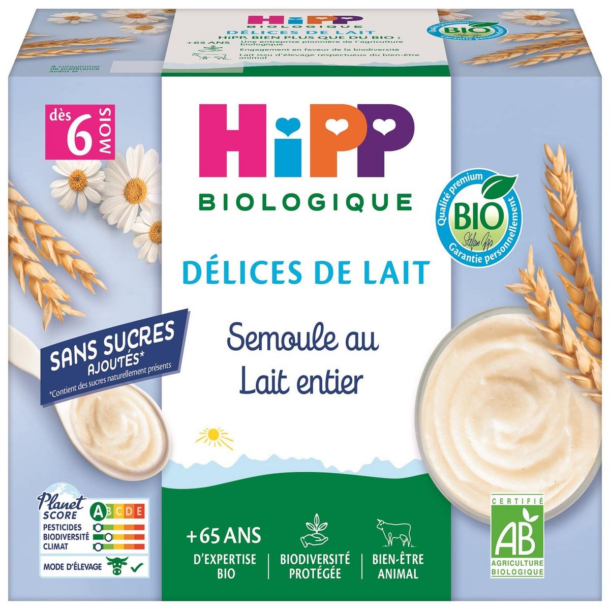 ✔ du lait, issu de vaches nourries d'herbe et de fourrages non traités, pour apporter du calcium nécessaire à Bébé,