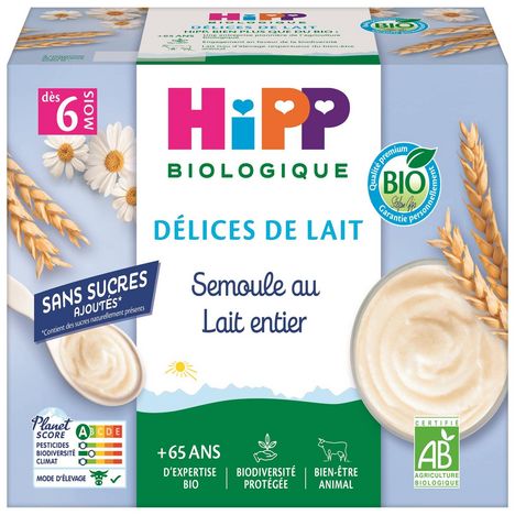 Petit pot dessert semoule au lait entier bio dès 6 mois