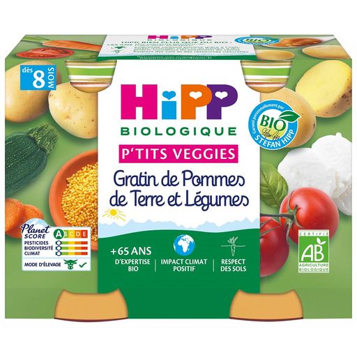 HiPP a développé P'tits Veggies, des menus végétariens complets avec :