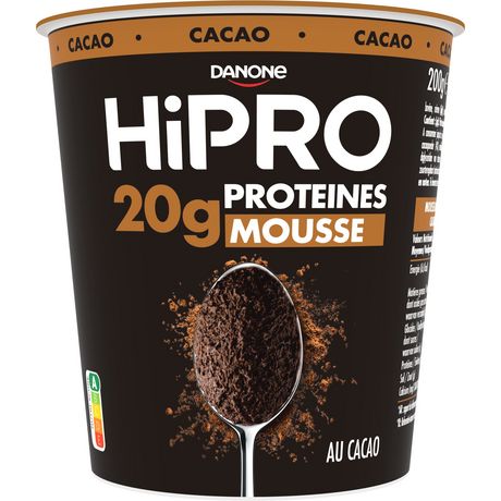 La mousse au chocolat Hipro est une mousse irrésistible avec 20 grammes de protéines par portions. Gourmande et pratique cette mousse au chocolat aérienne au bon goût de chocolat est idéale pour un encas ou en dessert. Faible en matières grasses c'est la meilleure façon de se faire plaisir sans compromis. Les protéines d'HIPRO contribuent au maintient de la masse musculaire. HiPRO mousse au chocolat peut être consommée comme encas, après un repas léger, ou encore après une séance de sport, pour vous assurer votre quantité de protéines nécessaire. HIPRO lance ses desserts pour recharger ton corps tout en profitant d'un vrai moment plaisir !
