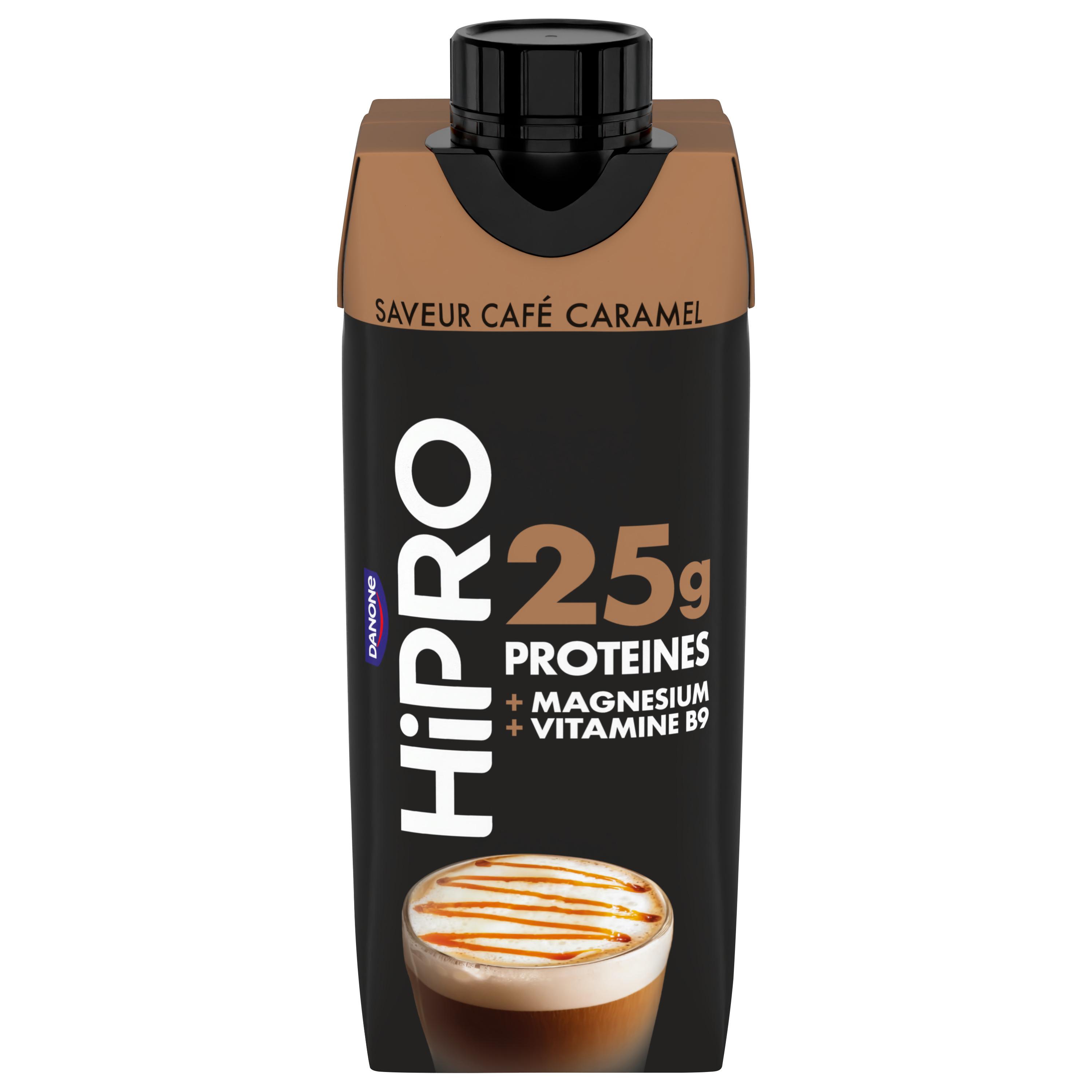 HiPRO UHT est un produit laitier à boire riche en protéines qui se consomme à température ambiante ou fraîche. Il contient 25g de protéines par bouteille, 0% de matières grasses, et est enrichi en magnésium et en vitamine B9**, pour contribuer au maintien de la masse musculaire* et à la réduction de la fatigue**. Disponible en saveur chocolat , vanille, café latte et café caramel.