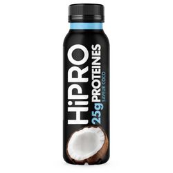 HiPRO à boire est un produit laitier riche en protéines*, avec 25g de protéines par bouteille, 0% de matières grasses, enrichie en magnésium et en vitamine B9**, pour contribuer au maintien de la masse musculaire* et à la réduction de la fatigue**. Pouvant se consommer 6h hors du frigo, il peut se consommer au petit-déjeuner, snack ou dessert, donc adapté à toutes les pratiques sportives! Disponible en 6 saveurs : banane, myrtille, noix de coco, vanille - cookie, mangue, fraise-framboise