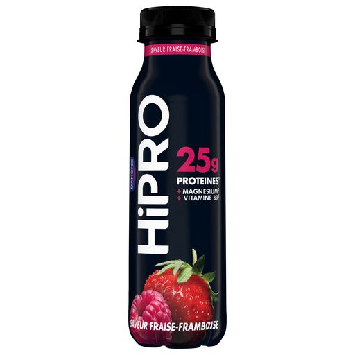 HiPRO à boire est un produit laitier riche en protéines*, avec 25g de protéines par bouteille, 0% de matières grasses, enrichie en magnésium et en vitamine B9**, pour contribuer au maintien de la masse musculaire* et à la réduction de la fatigue**. Pouvant se consommer 6h hors du frigo, il peut se consommer au petit-déjeuner, snack ou dessert, donc adapté à toutes les pratiques sportives! Disponible en 6 saveurs : banane, myrtille, noix de coco, vanille - cookie, mangue, fraise-framboise