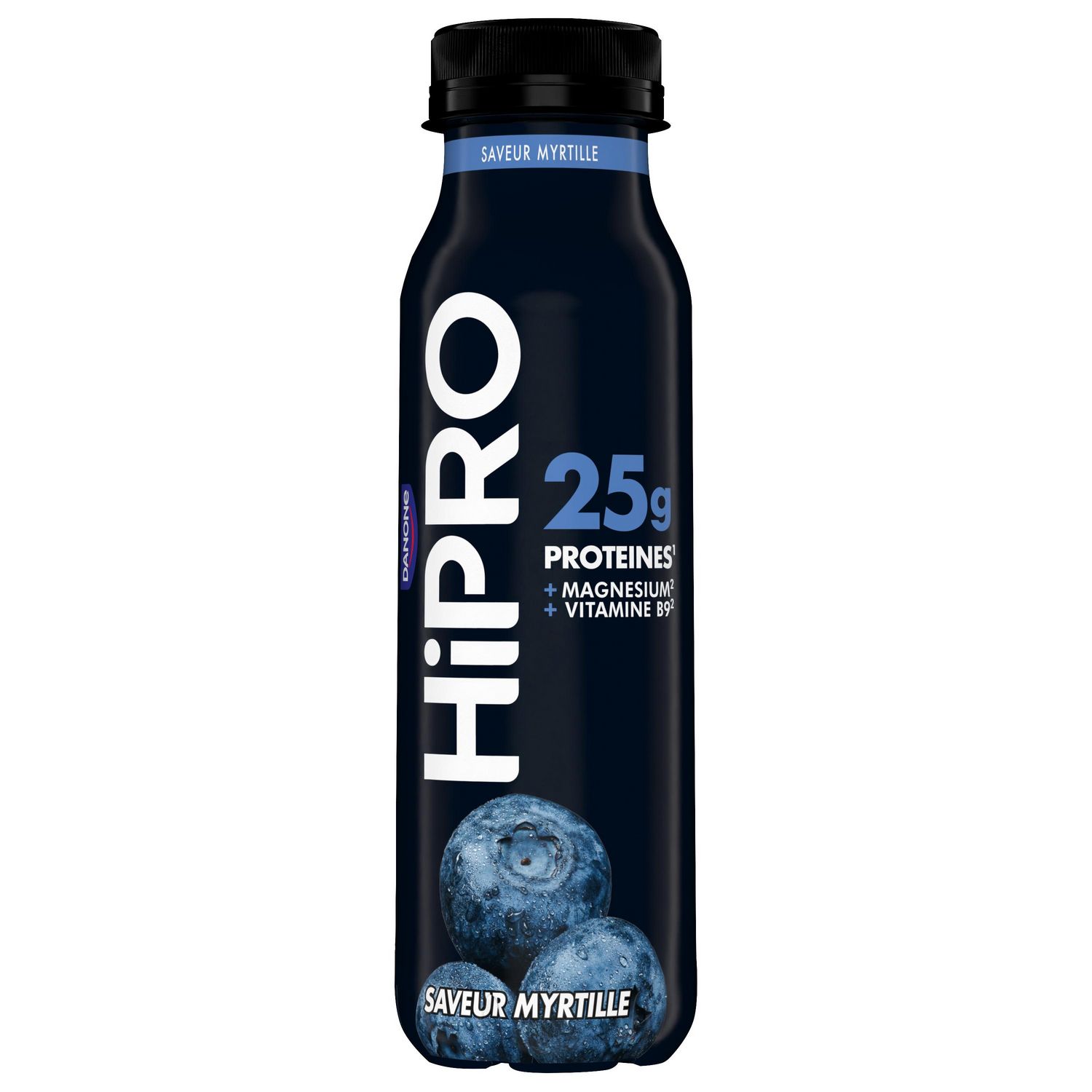HiPRO à boire est un produit laitier riche en protéines*, avec 25g de protéines par bouteille, 0% de matières grasses, enrichie en magnésium et en vitamine B9**, pour contribuer au maintien de la masse musculaire* et à la réduction de la fatigue**. Pouvant se consommer 6h hors du frigo, il peut se consommer au petit-déjeuner, snack ou dessert, donc adapté à toutes les pratiques sportives! Disponible en 6 saveurs : banane, myrtille, noix de coco, vanille - cookie, mangue, fraise-framboise