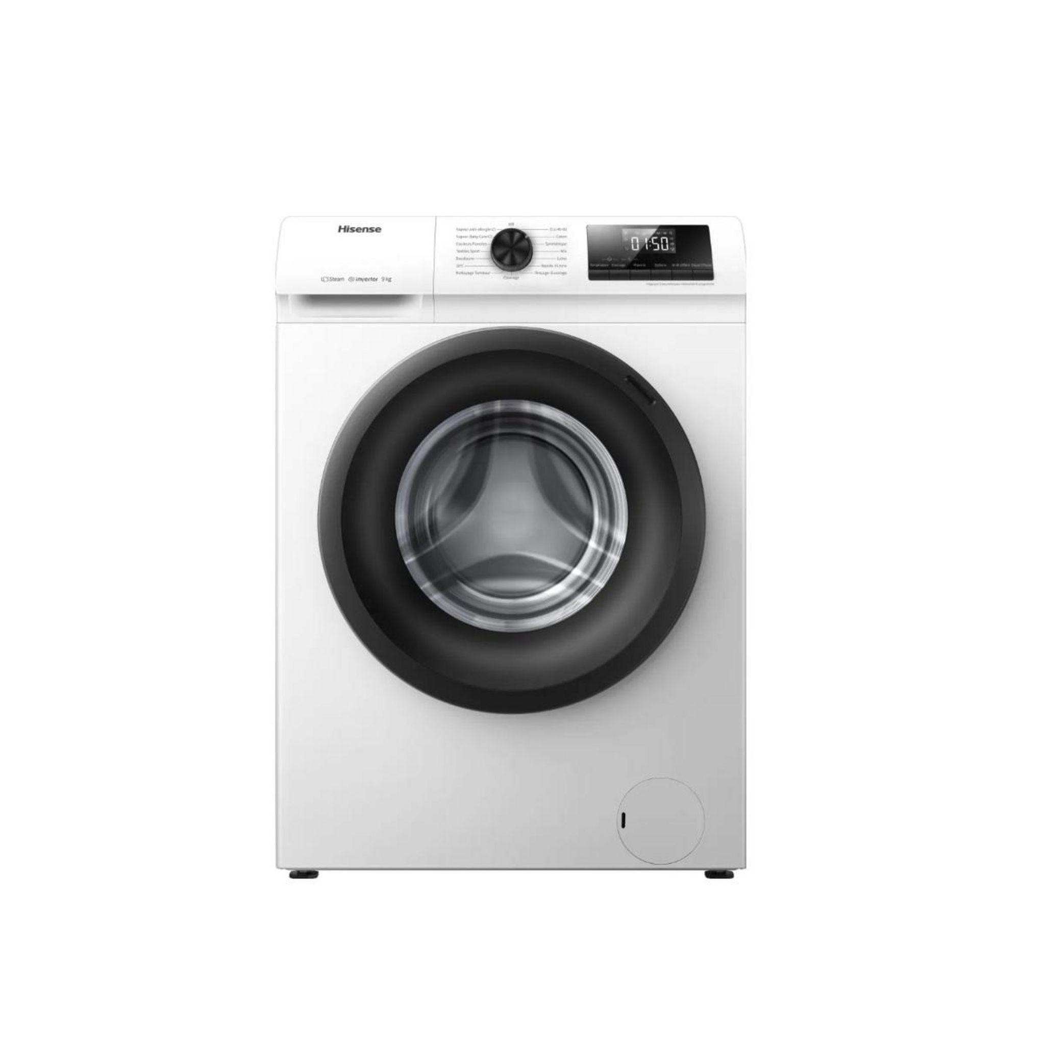 Hisense WFQP901418VM Lave-linge hublot WFQP901418VM de HisenseFonction VapeurUn traitement additionnel à la vapeur est disponible sur certains programmes afin d'éliminer allergènes et bactéries.InverterL'absence de friction dans le moteur permet de limiter les bruits, vibrations et d'abaisser la con