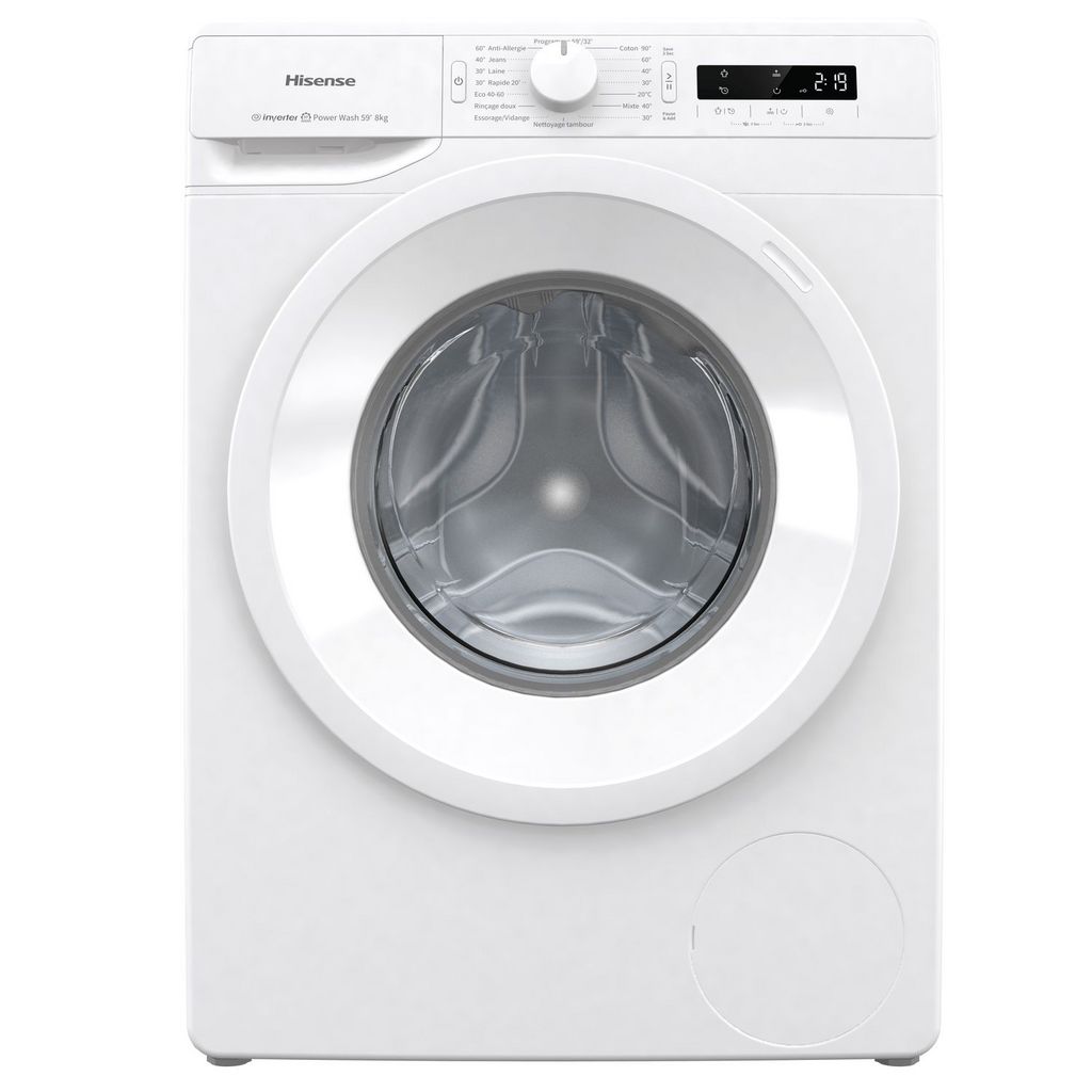 Hisense vous propose ce lave linge d'une capacité de 8 Kg pour un essorage de 1200 T/min, idéal pour un couple ou encore une famille peu nombreuse. Hisense vous propose 16 programmes dont les classiques laine, rapide, économique mais aussi des plus spécifiques comme le programme sport. Cette machine à laver dispose d'un indicateur de temps restant qui est très pratique pour vous organiser au mieux.