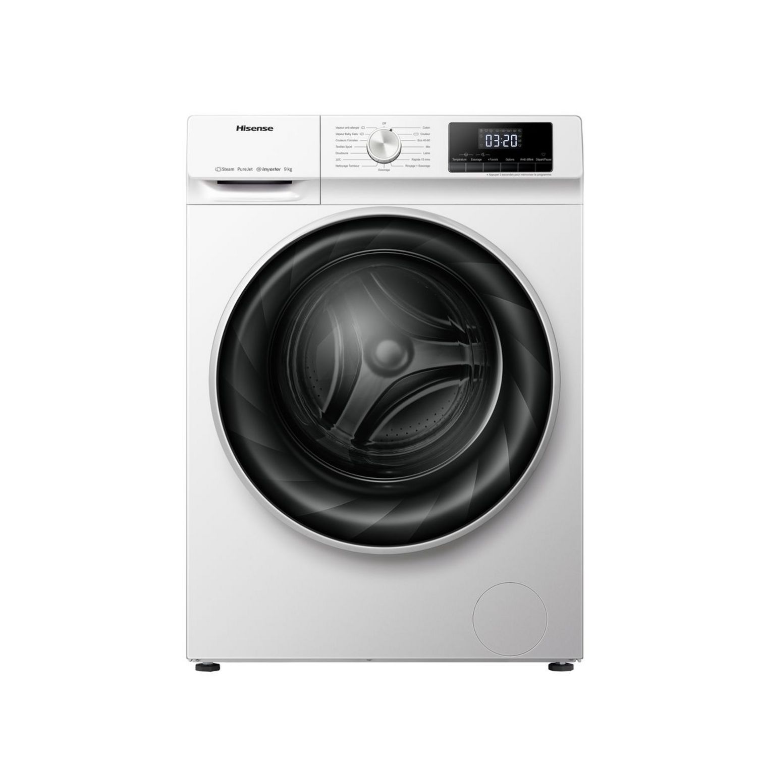 Hisense vous propose ce lave linge blanc d’une capacité de 9 Kg pour un essorage de 1400 T/min.