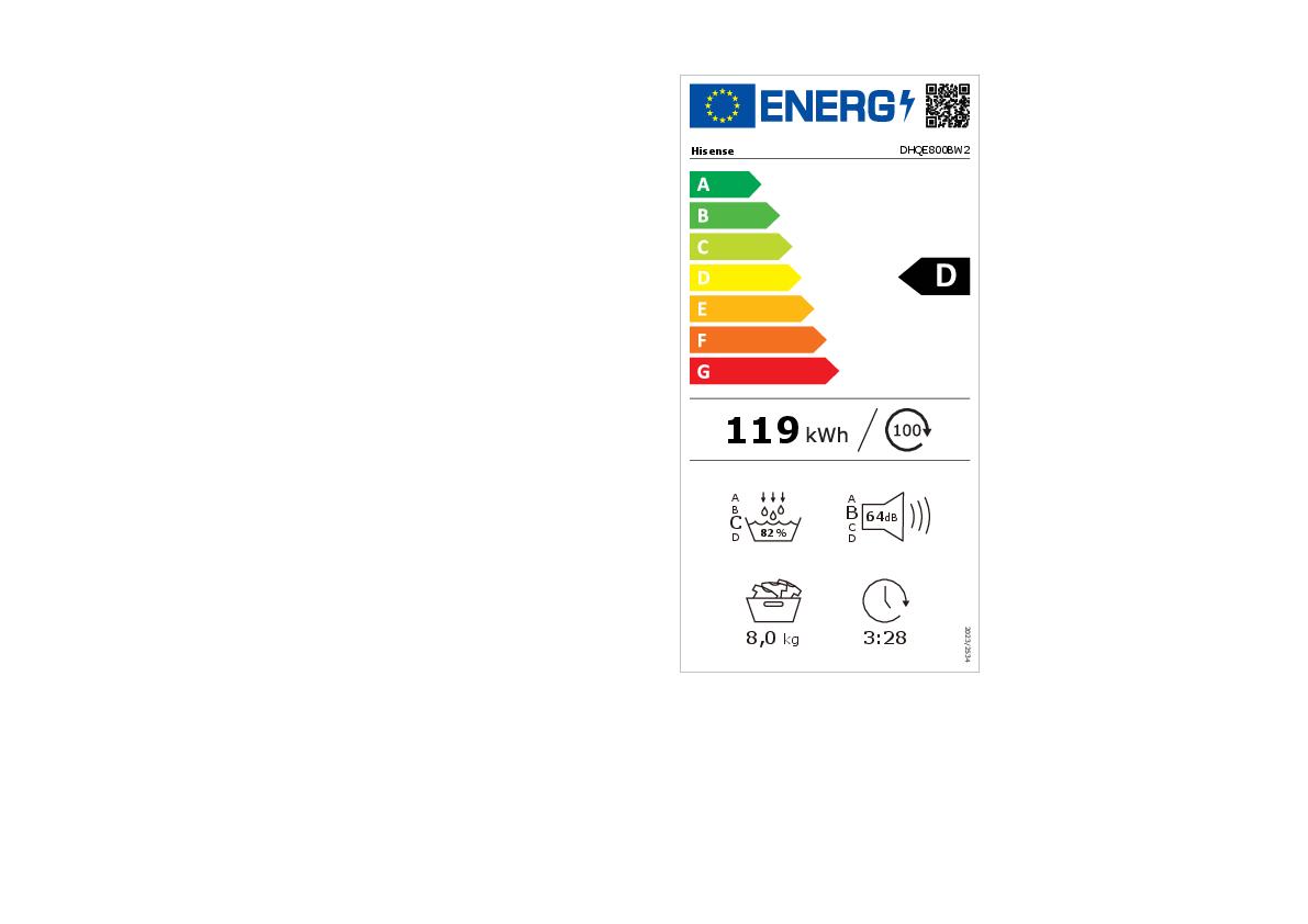 Sèche linge hublot DHQE800BW2, 8 kg, Pompe à chaleur, D