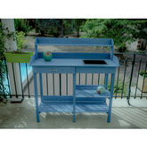 LES + PRODUIT : Très belle finition en couleur bleue lasuré - Table de rempotage pratique et décorative - Idéale pour le rangement de votre matériel de jardin - Parfaite pour la préparation de vos plants et boutures - Equipée d'un bac à rempoter - Nombreux espaces de stockage et de rangement - Peinture résistante à l'eau - Finition haut de gamme - Facile à monter et à entretenir - Résistante à la chaleur et aux intempéries - Labellisé FSC