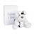 NOOPY est un bon gros toutou rassurant, tout en rondeur, avec une bouille craquante. Tout blanc , ses petites taches noires lui donne un air très coquin. Souple et très doux au toucher, il séduira petits est grands pour jouer, cajoler ou décorer la chambre. Présenté dans une belle boîte, c'est un cadeau idéal dès la naissance. Lavage à 30°, séchage naturel ou mécanique à basse température.