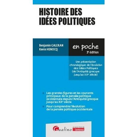 12 fiches sur l'histoire des idées politiques. Qu'est-ce que l'Histoire des idées politiques ? La Grèce, berceau de la pensée occidentale. Rome, entre philosophie et droit. La naissance de la pensée occidentale chrétienne. Construction de l'Etat et absolutisme. De la Renaissance à l'Epoque moderne.