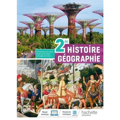 Vous retrouverez dans votre manuel d'Histoire-Géographie 2de : - Un manuel d'histoire-géographie conçu comme un manuel unique pour fournir aux élèves un outil simple et cohérent et pour aider les enseignants à mettre en oeuvre tout le programme de 2de. - En histoire, des études traitées sous différents angles (Regard de l'historien, Parcours croisés, Actrices de l'histoire). - En géographie, toutes les études de cas du programme et des pages Acteurs et enjeux et Labo de Géo pour travailler autrement et aller plus loin. - Des pages Grand Angle : des cartes, des frises, des infographies pour entrer dans les chapitres en Histoire ou pour changer d'échelle en Géographie. - Des supports de révisions variés (synthèse rédigée, activités en groupe, podcasts, exercices interactifs) adaptés à tous les profils d'élèves. - Des exercices guidés préparant progressivement aux exercices du bac, de la voie générale et de la voie technologique. - Un livret de méthodes et d'outils.