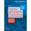 Le monde dans sa totalité, du début du XXe siècle à nos jours. Aussi vaste que stimulant, le programme d'Histoire, géographie et géopolitique du monde contemporain professe une ambition à la hauteur de son sujet : rendre compte de l'ensemble des enjeux géopolitiques du monde actuel. Parce que la réussite dans une pareille matière est autant affaire de savoirs que de savoir-faire, le présent ouvrage, conçu par une équipe d'enseignants en altes préparatoires chevronnés, permet d'acquérir tant les connaissances que la maîtrise des raisonnements attendus par les jurys. Au fil des deux années de alte préparatoire, il fera office de compagnon pour approfondir le cours au fur et à mesure qu'il sera traité par le professeur. A l'approche des concours, il servira à revoir le programme d'une seule traite. Structuré de manière à suivre exactement l'ordre du programme, ce manuel comprend un cours clairement organisé et nourri de nombreux exemples actualisés , une chronologie qui met en perspective les différentes aires géographiques , des repères biographiques , un glossaire détaillé , une méthodologie explicite s'appuyant sur des conseils concrets , des sujets corrigés , des bibliographies thématiques et commentées.