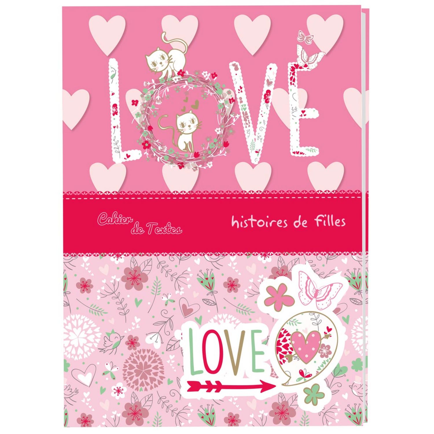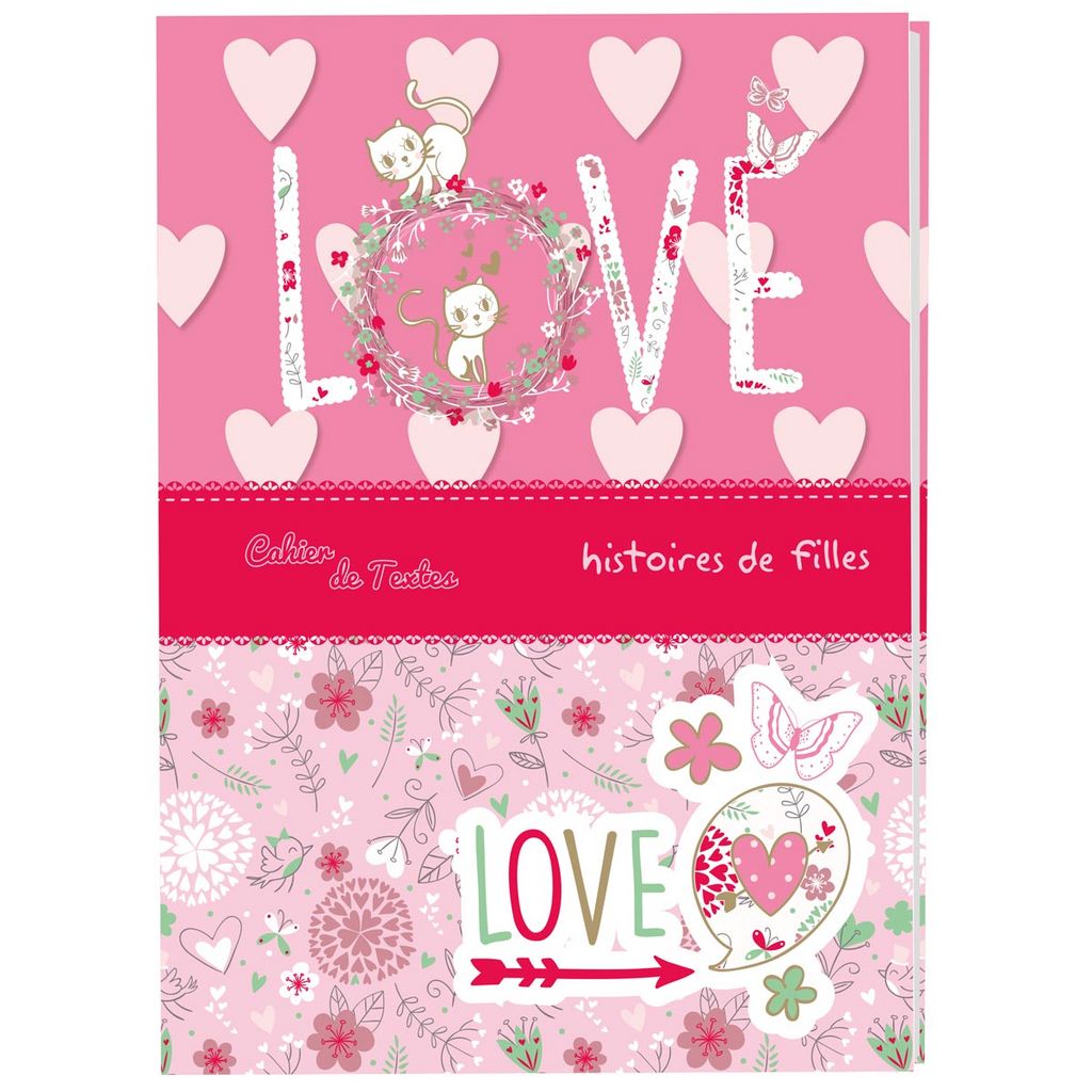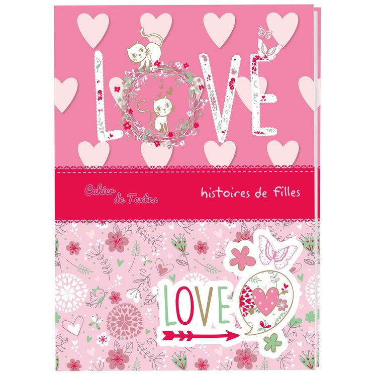 AUC Cahier de texte fille 15,5x21,5cm 204 pages Love rose
