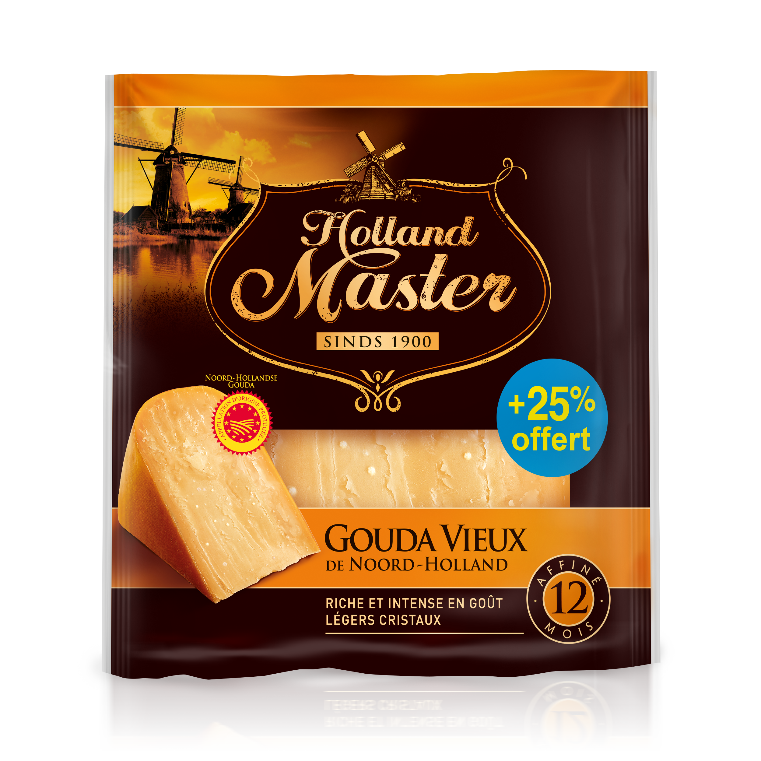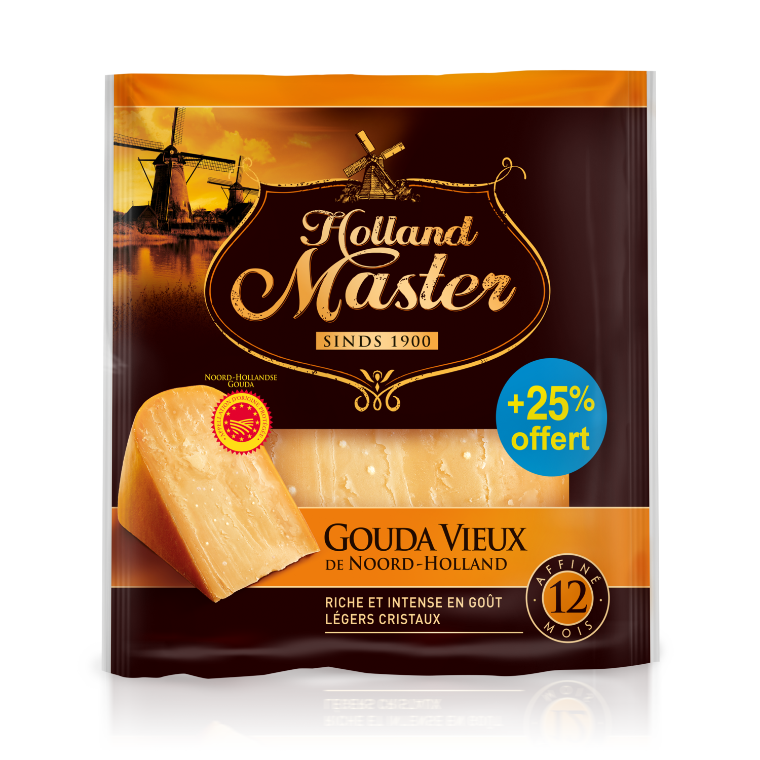 Gouda Vieux. Appellation Origine Protégée - Noord-Hollandse Gouda HOLLAND MASTER GOUDA VIEUX AOP 200G+25% OFFERT