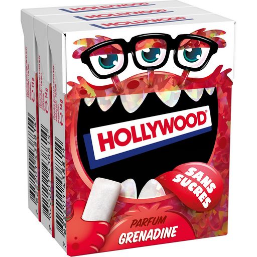 Chewing-gum sans sucres avec édulcorants - Parfum grenadine. Découvrez Hollywood Kids, le chewing-gum parfum Grenadine qui plaît aux enfants ! Contient 10 dragées.