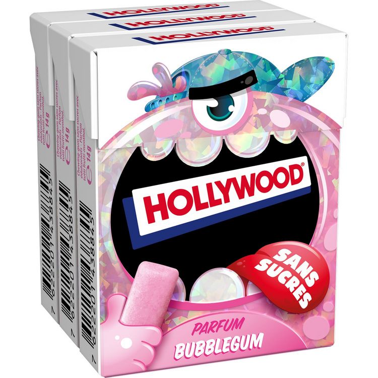 Chewing-gum sans sucres avec édulcorants - Parfum tutti frutti-menthol. Découvrez Hollywood Kids, le chewing-gum parfum Bubble-gum qui plaît aux enfants ! Contient 10 dragées