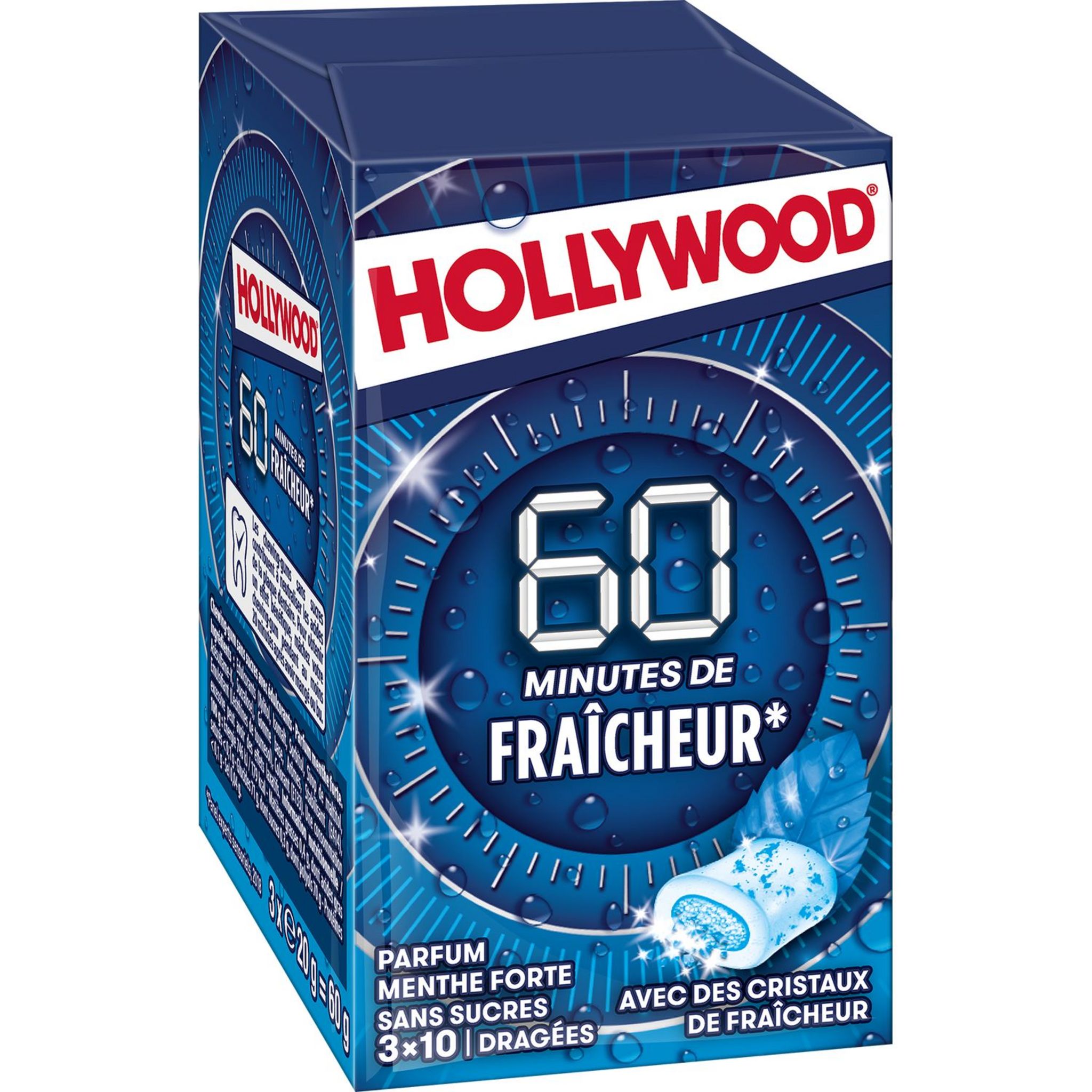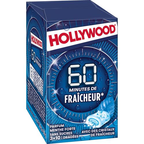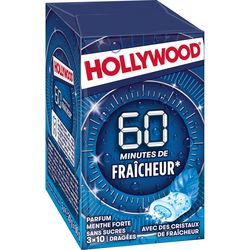 Chewing-gum sans sucres avec édulcorants - Parfum menthe forte A la recherche d'une fraîcheur longue durée ? Les chewing-gums Hollywood 60 minutes de fraîcheur parfum menthe forte au cœur poudré sont faits pour vous !