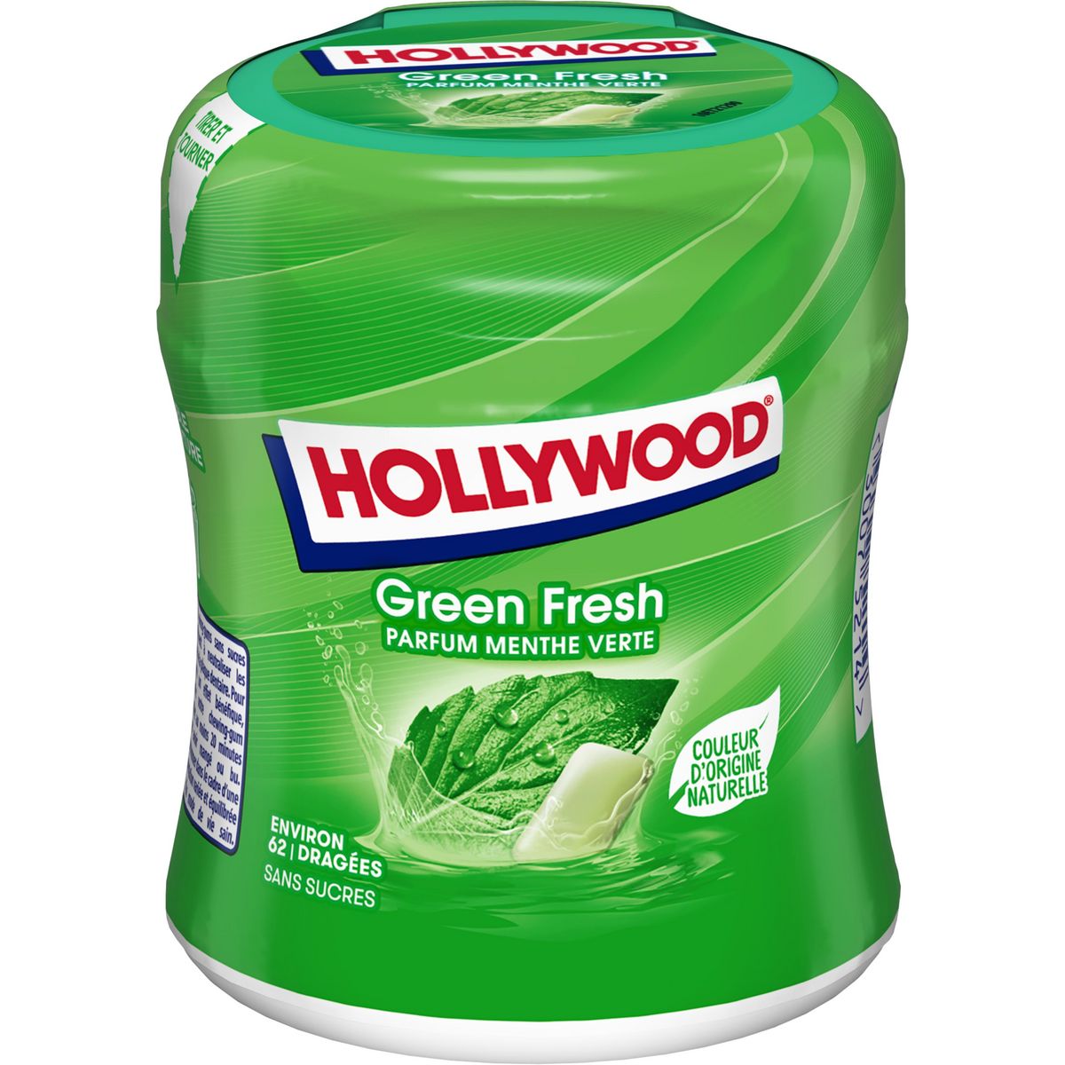 Ingrédients: Edulcorants (Sorbitol, Isomalt, Maltitols, Sucralose), Gomme base, Arômes, Epaississant (Gomme arabique), Humectant (Glycérol), Emulsifiant (Lécithines), Agent d'enrobage (Cire de carnauba), Extrait de spiruline, Colorant (Curcumine).