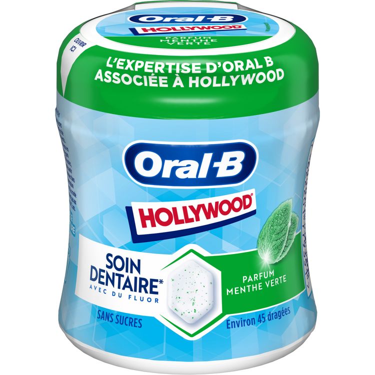 Envie de fraîcheur ? Découvrez le nouveau chewing-gum au fluor Hollywood et Oral B ! Son parfum Menthe Verte vous apporte une sensation de fraîcheur après chaque repas !