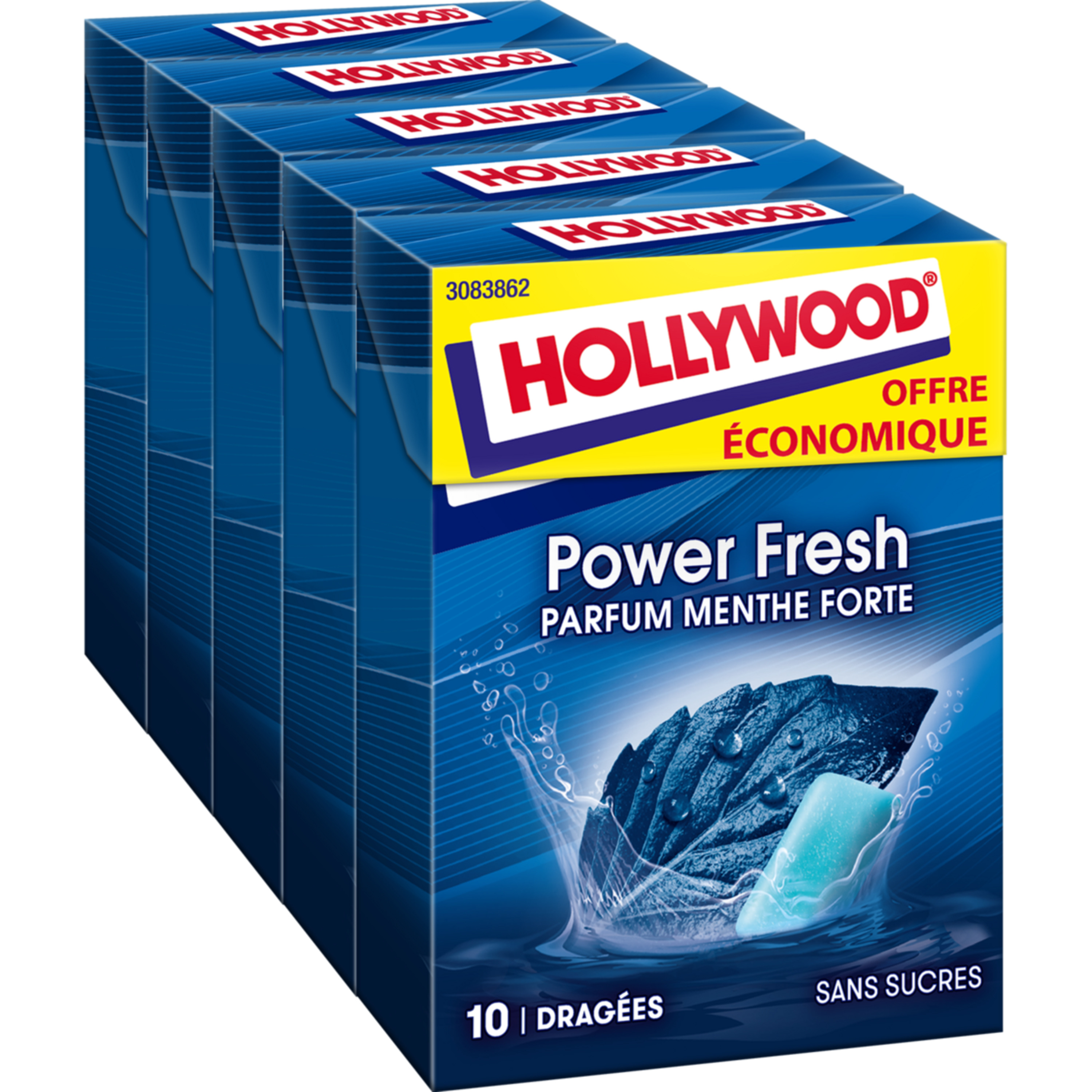 Chewing-gum sans sucres avec édulcorants. Parfum menthe forte. Envie de fraîcheur intense ? Laissez vous tenter par le parfum menthe forte des chewing-gums Hollywood Power Fresh.